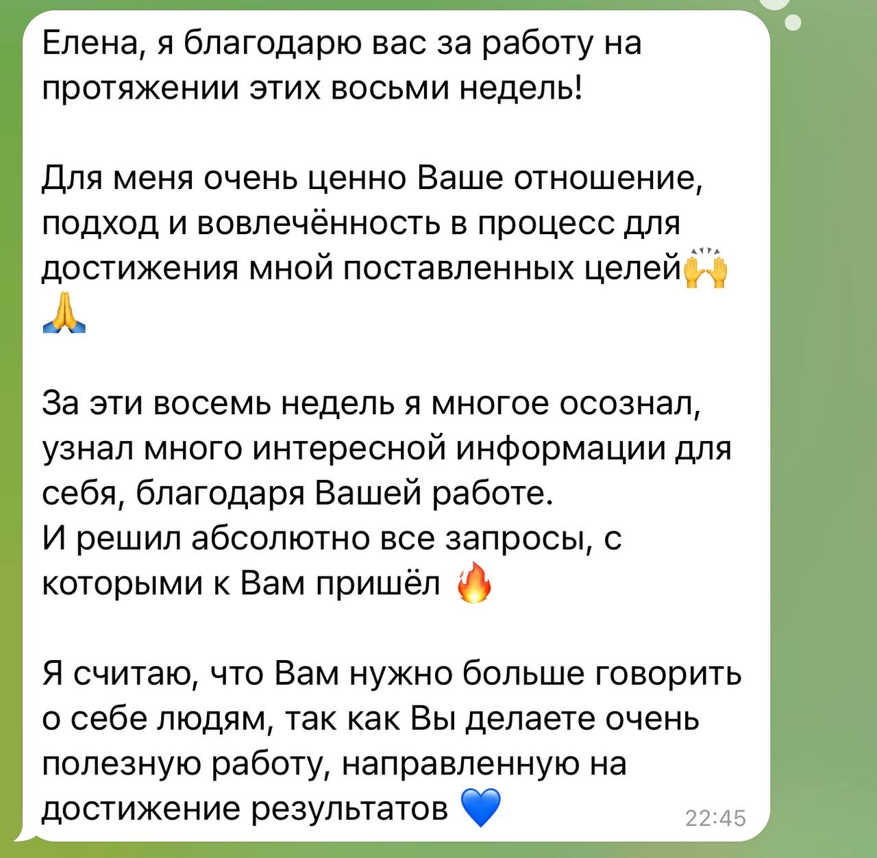 Клиент полностью упаковал себя как специалиста: появился понятный текст о том, кто он, что делает и с какими запросами работает, а также структурированная линейка продуктов. Он начал набирать команду под задачи, которые раньше тянул в одиночку, и перестал рассматривать себя как «одного человека на все роли». Доход вырос с 50 000 до 300 000, при этом у него появилось ощущение ясности в целях и направленном движении к дальнейшей финансовой планке.